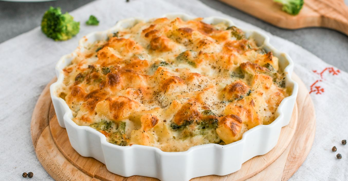 Zapekané zemiaky s brokolicou a cheddarom