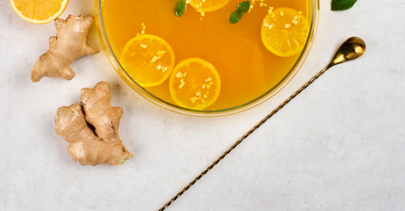 Zázvorovo-citrónový sirup s kurkumou, pomarančom a mätou