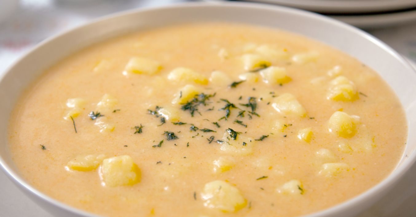 Prilejeme s mliekom a múkou vyšľahanú bryndzu a povaríme. Hotovú polievku ochutíme najemno nakrájaným kôprom a podávame.