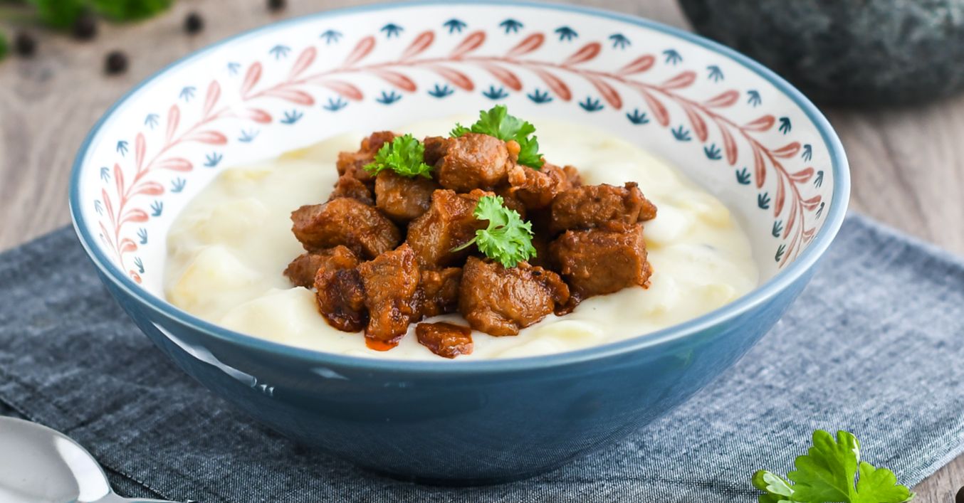 Zemiakový prívarok s opraženým bravčovým mäsom