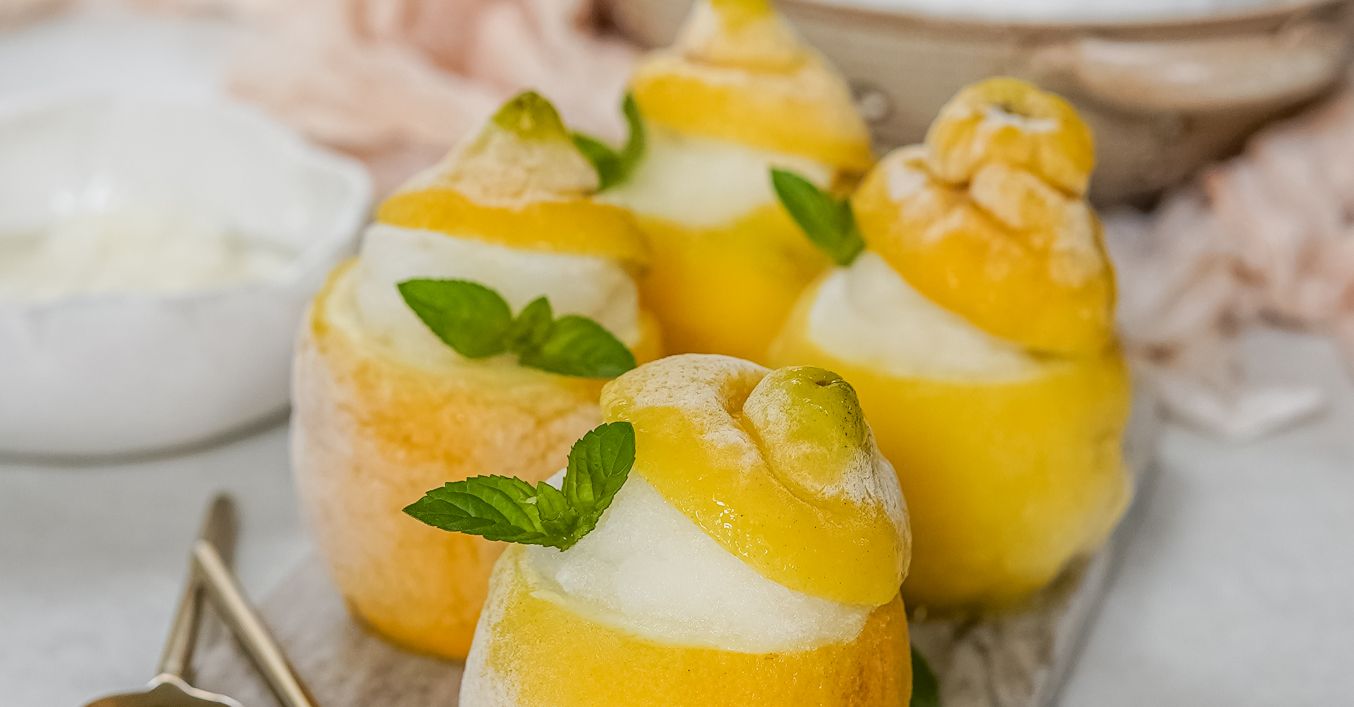 Zamrazené kocky rozmixujeme a sorbet podávame v zamrazených vydlabaných citrónoch. Zvyšok dáme do misky a zamrazíme.