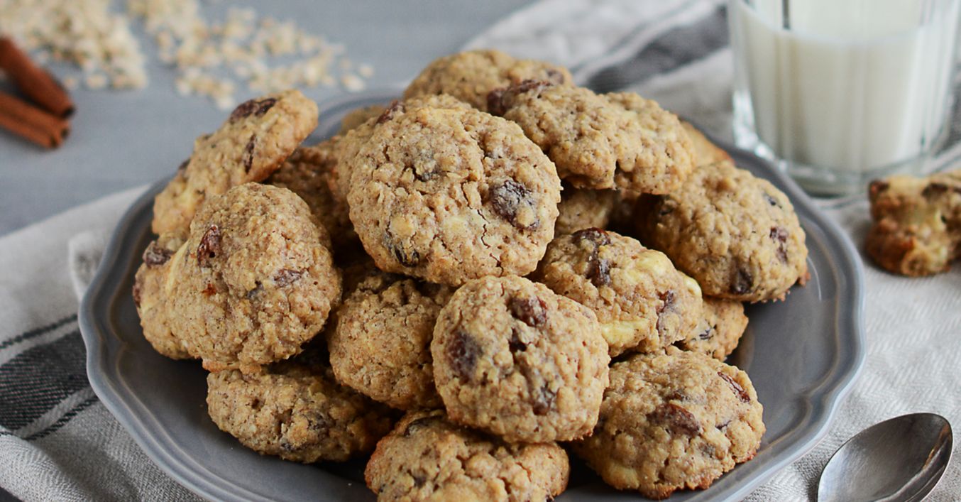 V miske zmiešame ovsené vločky, múku, hrozienka, škoricu a sódu bikarbónu. Vo väčšej miske vymiešame maslo s cukrom a pridáme vajce.