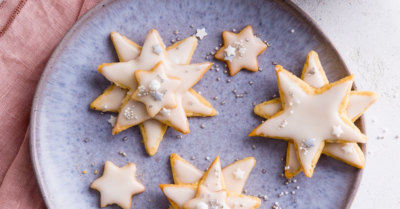 Cesto vyvaľkáme a vykrojíme z neho hviezdičky 3 rôznych veľkostí, z každej veľkosti 15 kusov. Položíme ich na plech vystlaný papierom na pečenie a pečieme vo vyhriatej rúre pri 160 °C asi 10-12 minút.