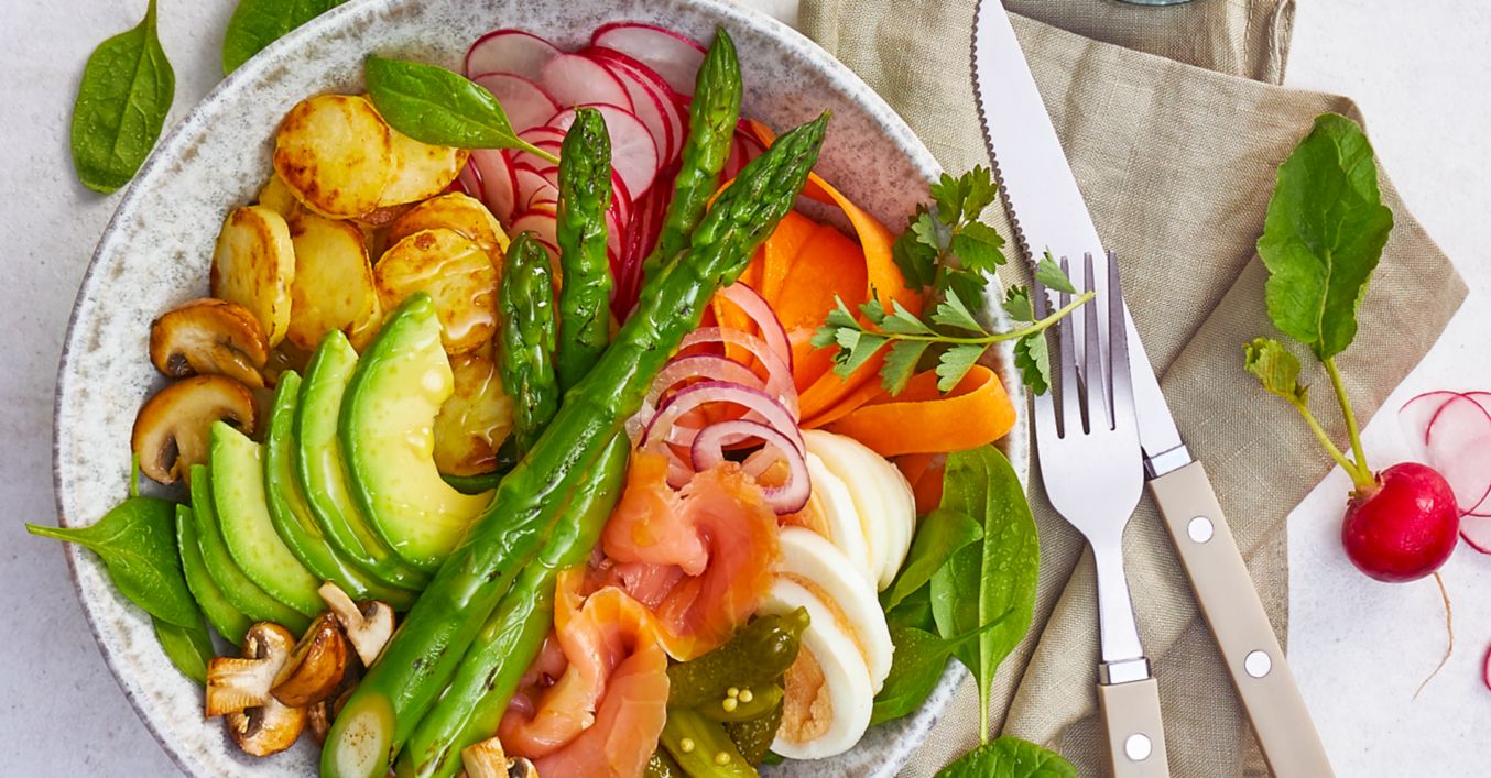 Jarná miska s lososom a uhorkami