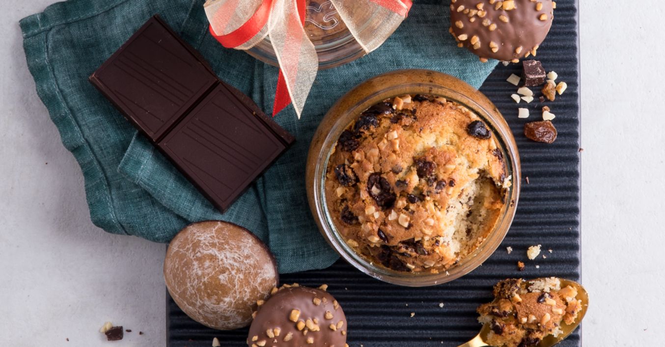 Opatrne vmiešame čokoládovú zmes, cesto rozdelíme do 10 malých vymastených pohárov a pečieme v rozohriatej rúre pri 180 °C asi 30 až 40 minút. Medovníčky necháme vychladnúť, poprášime práškovým cukrom a uzavrieme vekami. Poháriky môžeme odzdobiť darčekovou stuhou.