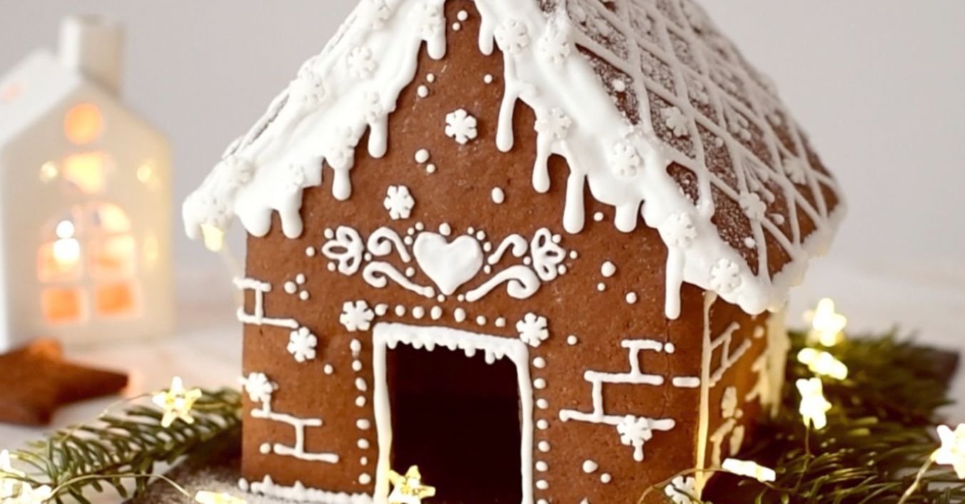 Cesto rozvaľkáme na hrúbku 0,5 cm. Vykrojíme domček podľa šablóny a pečieme pri 170 °C približne 8 minút. Necháme vychladnúť.
