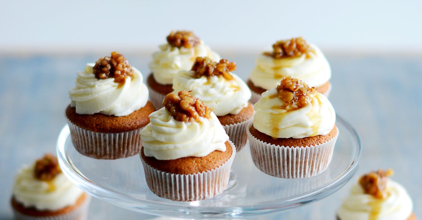 Smotanový syr zmiešame so šľahačkou, citrónovou kôrou a práškovým cukrom. Krém dáme do vrecúška na zdobenie a ozdobíme mafiny. Nakoniec na vrch dáme lyžičku karamelizovaných orechov.