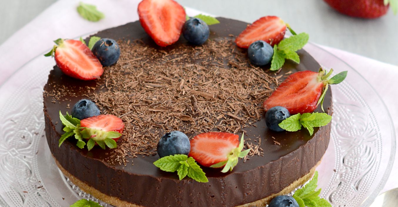 Hotovú tortu vyberieme z formy, ozdobíme čokoládovými hoblinkami a ovocím. Krájame teplým nožom.
