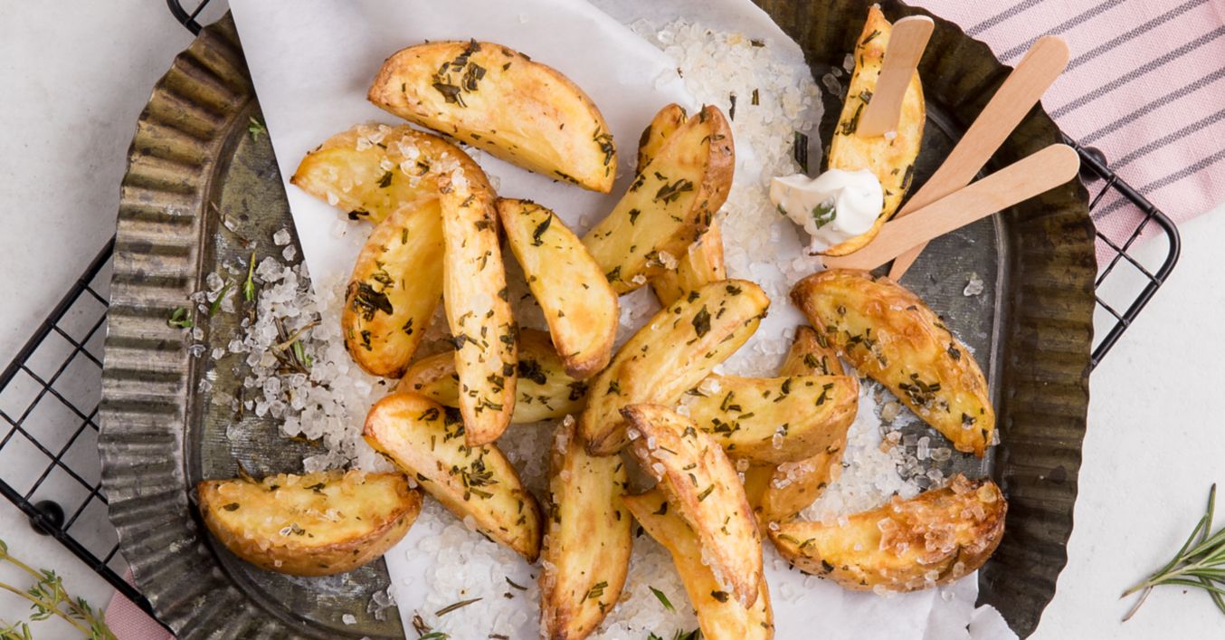 Plech na pečenie posypeme hrubou soľou a poukladáme naň štvrtiny zemiakov, pečieme v rúre vyhriatej na 180 °C približne 30 minút. Potom dochutíme soľou a čiernym korením. Podľa chuti zemiaky potrieme maslom a podávame.