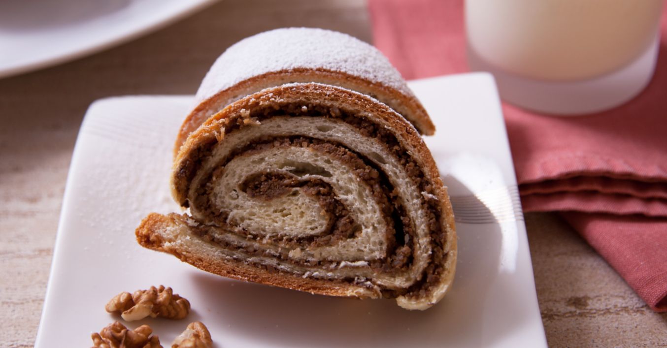 Cesto rozdelíme na tri časti a vyvaľkáme na pomúčenej doske. Každú časť bohato naplníme plnkou a stočíme do rolky .Vrch pomastíme olejom a upečieme na vymastenom pekáči.