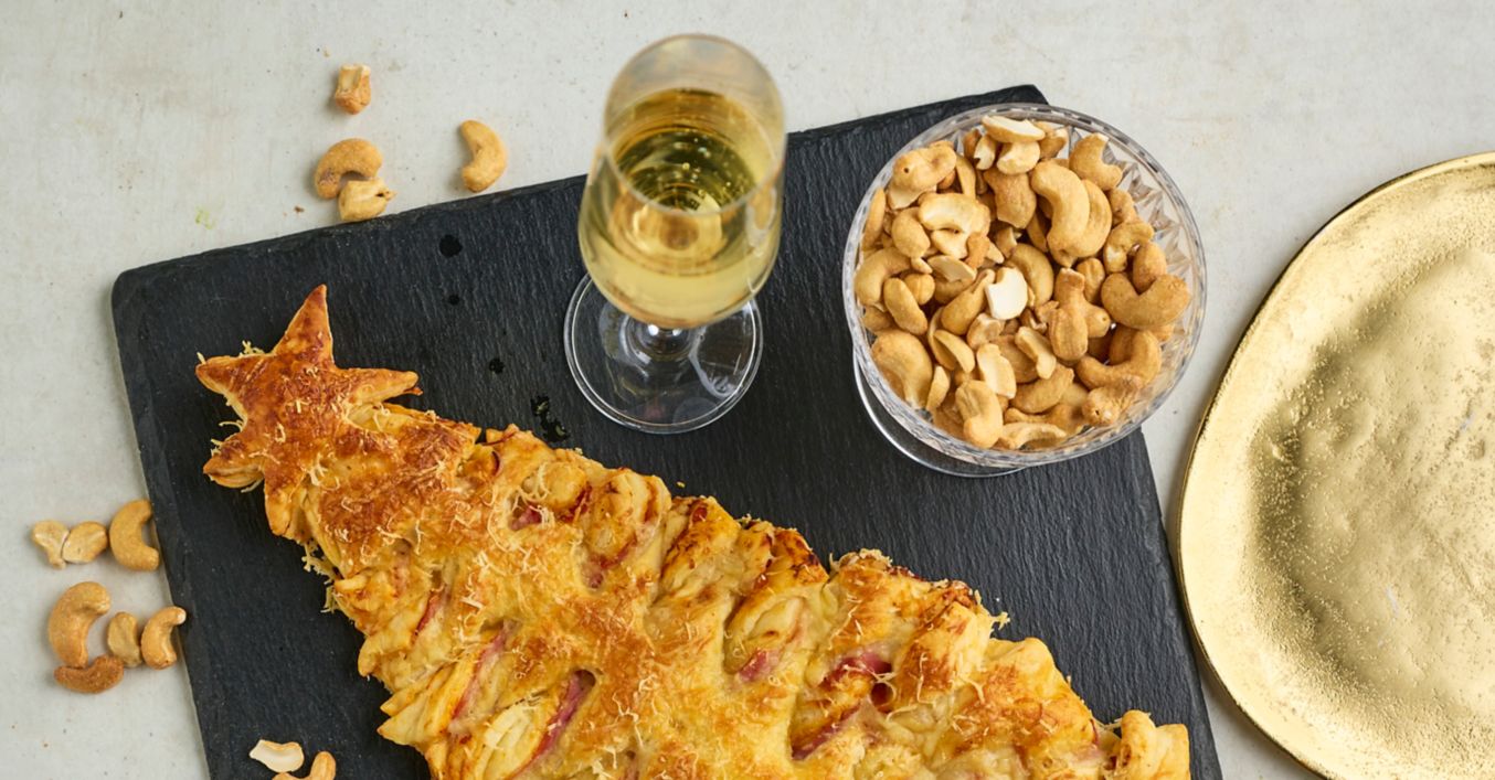 Lístkové cesto rozvaľkáme a vytvarujeme na dva trojuholníky (stromčeky). Spodný potrieme kečupom/pestom, poukladáme šunku a syr, prikryjeme druhým plátom a jemne pritlačíme. Vyrežeme kmeň a narežeme prúžky, ktoré zatočíme do špirály (vetvy). Potrieme vajíčkom, posypeme semienkami a pečieme na 200 °C 15 až 20 minút do zlatista. Podávame teplé. (Autorky receptu: Baby na mizine)