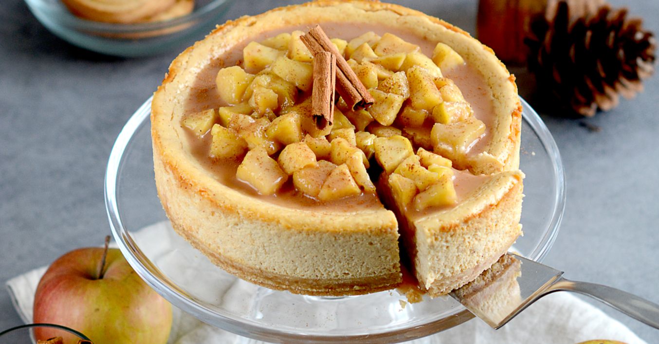 Škoricový cheesecake s jabĺčkami so slaným karamelom