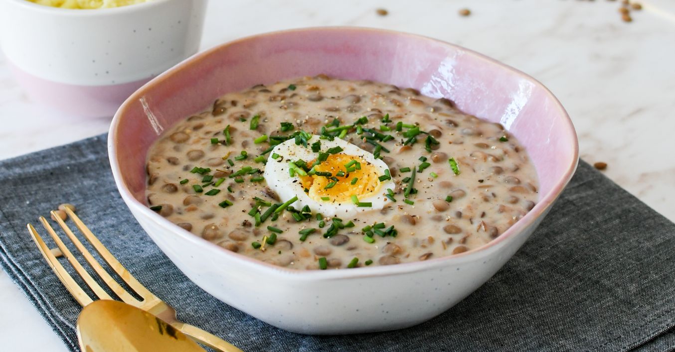 Varíme asi 25 minút. Smotanu si rozmiešame v miske s múkou, môžeme ju zriediť s trochou vody zo šošovice. Takto pripravenú smotanu po častiach prilejeme do šošovice. Ochutíme soľou a korením. Necháme ešte 15 minút prevariť za občasného miešania. Na záver ešte dochutíme malou lyžičkou cukru, octom a ak je treba - soľou.