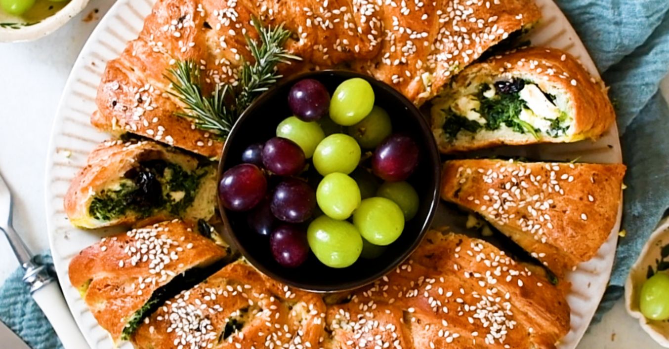 Špenát rozmrazíme a vyžmýkame. Šalotku a cesnak nakrájame a na rozpálenom masle opečieme do sklovita. Pridáme k špenátu. Trochu osolíme a okoreníme, pridáme najemno nasekaný rozmarín a vajíčka. Potom pridáme balkánsky syr a premiešame.