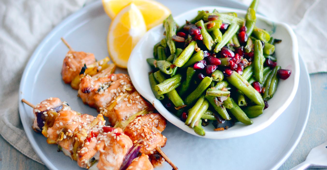 Gaštany a cesnak nakrájame nadrobno. Na panvicu dáme trochu olivového oleja a gaštany s cesnakom jemne opražíme. Pridáme fazuľky a dochutíme soľou a čiernym korením. Pár minút podusíme, kým nie sú fazuľky mäkké, no stále trošku chrumkavé. Nakoniec posypeme granátovým jablkom a podávame s upečeným losom.