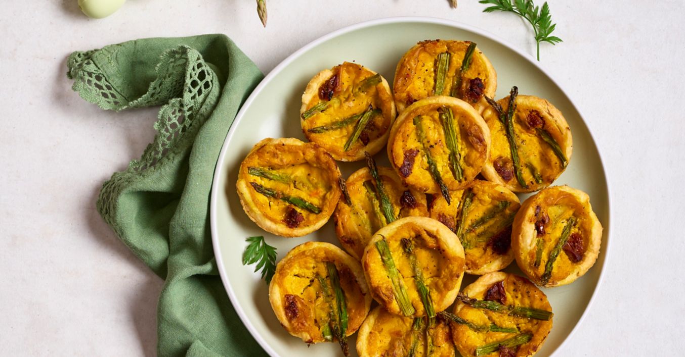 Lístkové cesto kratšou stranou zrolujeme do valca, ten nakrájame na 12 rovnakých koliesok. Každé roztlačíme medzi palcom a ukazovákom tak, aby sme mohli celý košíček vystlať cestom vo forme na muffiny. Následne ho plníme plnkou z tofu a tekvice, na vrch pridáme sušené rajčiny, špargľu či inú zeleninu a lyžičku čistej hokkaidovej zmesi. Košíčky pečieme pri 200 °C asi 30 až 35 minút, alebo kým nebude lístkové cesto zlaté. Po miernom vychladnutí pridáme listy bazalky a jemne košíčky posolíme soľou.