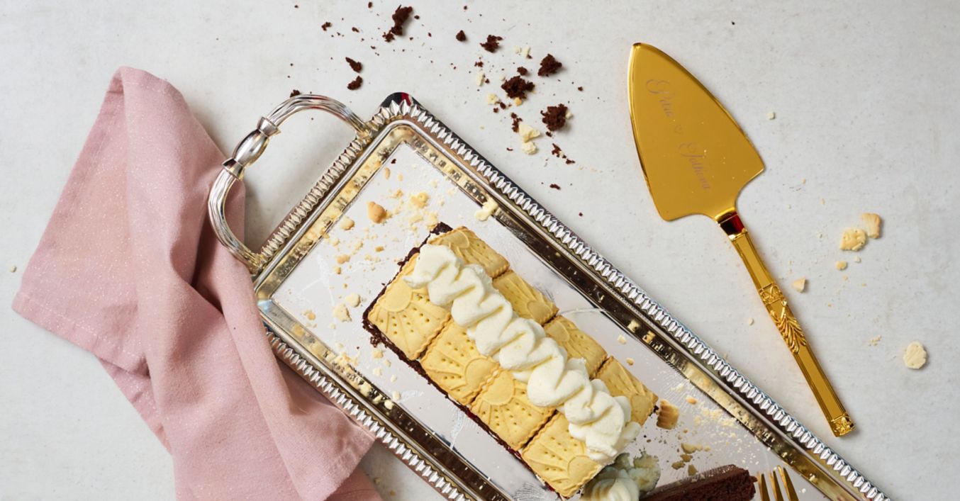 Piškótu vyklopíme na kuchynskú utierku a odstránime papier na pečenie. Vykrojíme tri rovnako veľké kusy na základ domčeka (približne 18 x 10 cm). Na strechu vykrojíme piškóty o niečo užšie. Na podnos položíme 10 cm široký piškótový korpus ako základ a potrieme ho džemom, potom nanesieme vrstvu krému. Navrch položíme druhú vrstvu piškótového korpusu a postupujeme ako pri prvej vrstve. Pokračujeme, kým nebude celý domček pokrytý vrstvami. Potom ho potrieme krémom a trochu krému odložíme aj na strechu. Dáme na noc do chladničky. Na vrch domčeka nalepíme bezgluténové sušienky ako strechu. Tesne pred podávaním môžeme zvyšný krém použiť ako sneh a dozdobiť strechu domčeka.