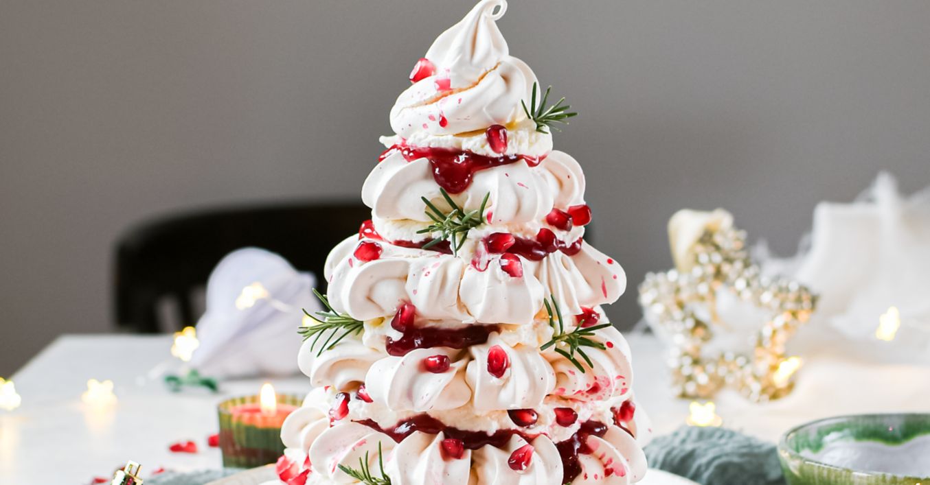 Do misky dáme mascarpone, šľahačku, práškový cukor a vanilku. Vyšľaháme tuhý sneh. Na tanier dáme trochu krému a prilepíme naň najväčšiu pavlovku. Potrieme ju malinovým džemom a krémom. Môžeme pridať aj mrazené maliny. Na krém potom položíme ďalšiu pavlovku a postup opakujeme. Na vrch stromčeka dáme pusinku. Celý stromček dozdobíme vetvičkami rozmarínu a malinami či granátovým jablkom.