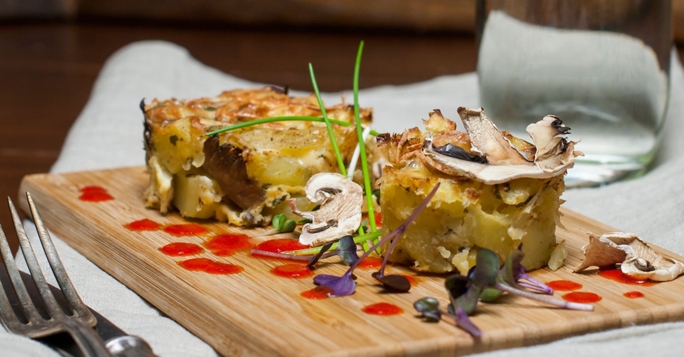 Všetky suroviny dáme do pekáča a zalejeme rozšľahanou smotanou a vajcami. Zapekané v rúre približne 45 minút. Podávame so zeleninovým šalátom.