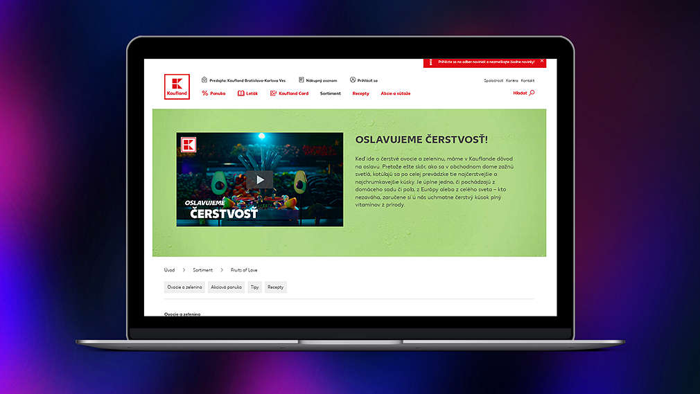 Čerstvé ovocie a zelenina sú dôležitou súčasťou vyváženého a na vitamíny bohatého stravovania. Preto vám v Kauflande ponúkame počas celého roka pestrý sortiment z kontrolovaného a certifikovaného pestovania, ako aj z ekologického bio poľnohospodárstva. A tak sa zo sadov a polí dostane rovno na váš stôl iba to najčerstvejšie ovocie a zelenina – od jabĺk až po zemiaky. Zaručene!